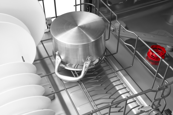 Can’t fit everything inside? We can move the top rack up or down, giving us more space for large pots or for tall cups and glasses. Now we can move the rack even when it’s fully loaded!