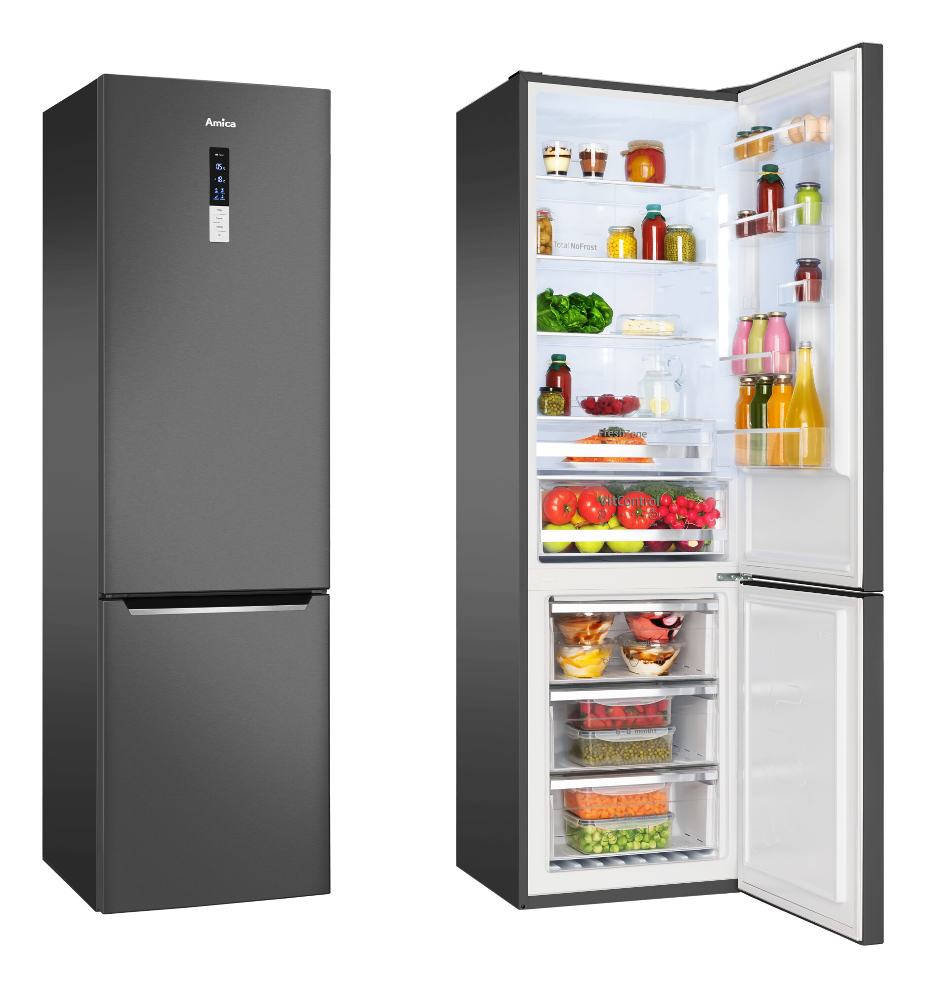 Ovo je posebna zona u kojoj možete da kontrolišete vlažnost vazduha. Koristite namenski klizač da biste pustili vazduh unutra ili ga blokirali. Ova funkcija je posebno pogodan za čuvanje lako kvarljive hrane kao što je voće i povrće. VitControl fioka duže čuva boju hrane, aromu i svežinu.
